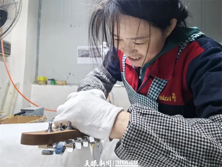 近日,走进遵义神曲乐器制造有限责任公司的数控车间,调音师指尖轻拨琴弦,包装线上的工人们将一把把崭新的吉他封装装箱。